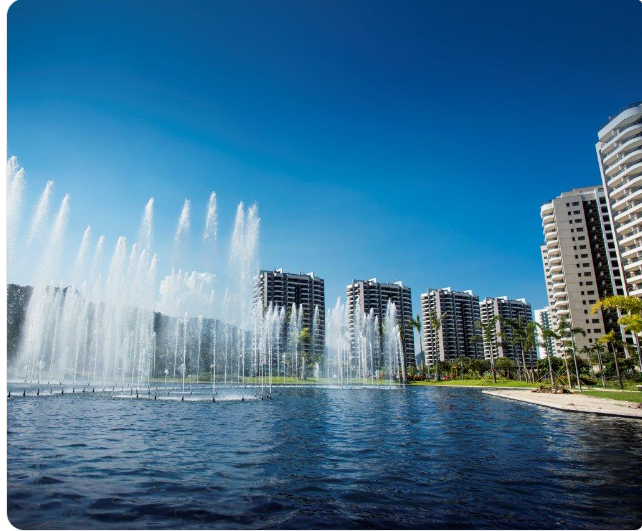 Localizado na Barra Olímpica, o Ilha Pura oferece uma enorme área de lazer com passarelas, espelhos d’água, jardins sensoriais e um belíssimo chafariz automatizado, que realiza apresentações com água e música. A área de lazer é imensa, ótima para andar de patins, bicicleta, entre outros. Possui “lâminas d’água”, passarelas, decks, jardins sensoriais, espelhos d’água — tudo integrado a uma paisagem de lazer, natureza e contemplação.